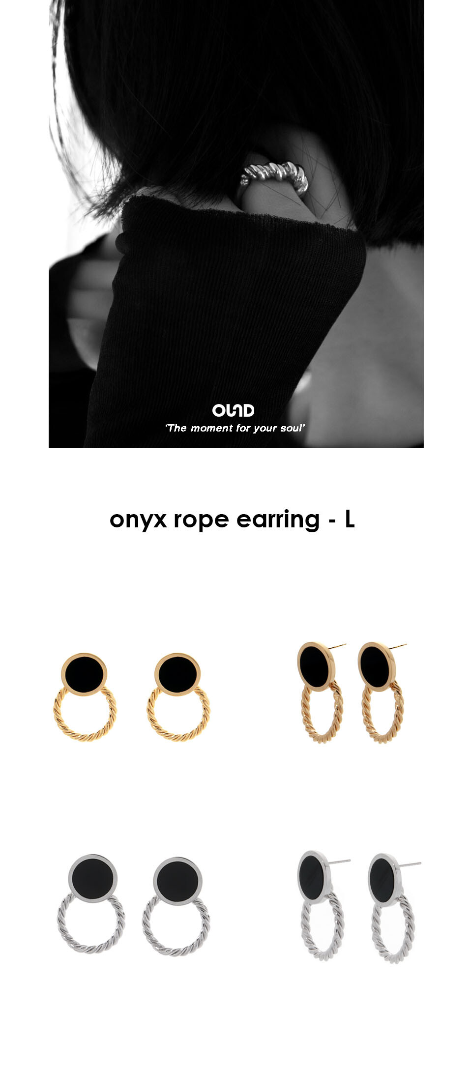 천연 블랙 오닉스가 세팅된 원석 귀걸이입니다. 오닉스의 사이즈감이 있는 제품으로 포멀, 캐쥬얼 어디에 연출하셔도 세련된 스타일링이 완성됩니다. 오닉스와 연결된 로프 부분을 움직이도록 디자인하여 입체감이 느껴집니다. 젊은 여성분들에게는 세련된 느낌을 주고, 연령층이 높으신 분들에게도 고급스럽게 착용하실 수 있어 선물로 추천드립니다.
