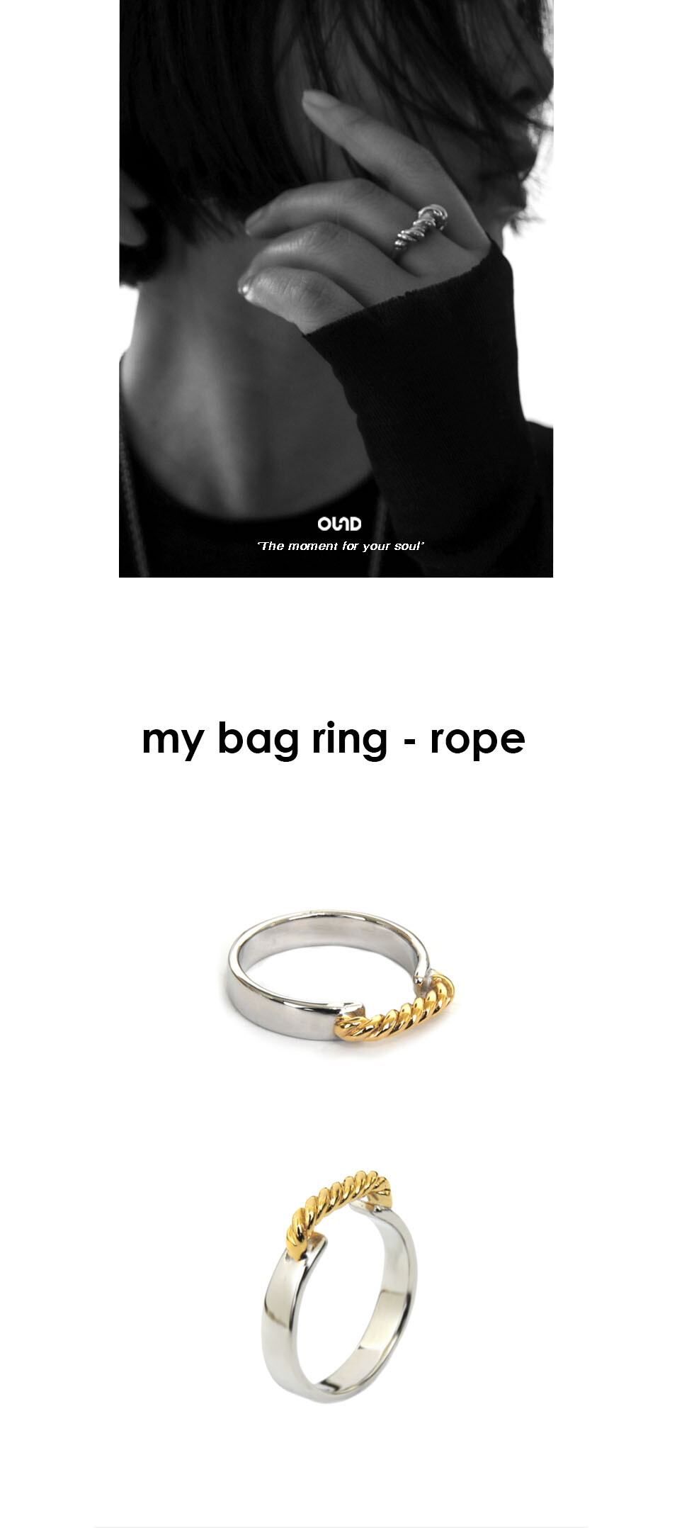 가방을 모티브로 디자인한 반지로 미니멀하고 심플하게 재해석한 반지입니다. 클래식하고 세련된 느낌의 데일리 링으로 활용하기에 좋은 제품입니다. 반지의 모든 부분이 둥글게 처리되어 편안한 착용감을 느끼실 수 있습니다. 유니크한 커플링을 찾으시는 분들께도 인기가 좋으며, 심플버전과 로프버전 두개를 겹쳐 착용하시면 독특한 매력을 느낄 수 있는 반지입니다.