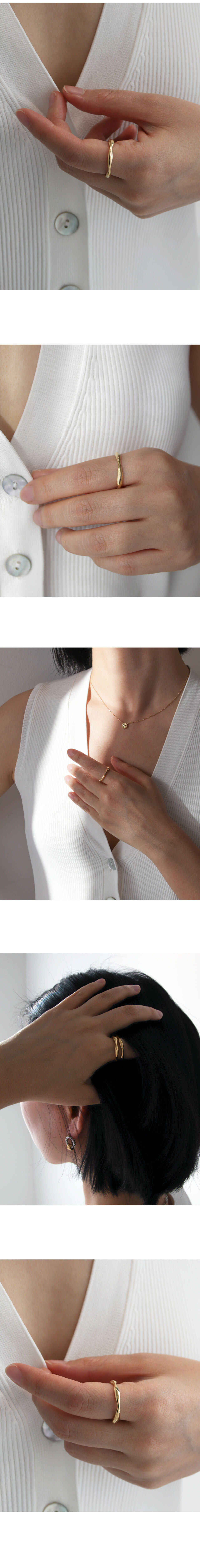 비정형적으로 깎인 데일리 실버링입니다. 유연하게 흐르는 듯한 느낌과 러프한 느낌을 함께 느낄 수 있는 디자인입니다. 다양한 방향으로 착용 가능하며, 어떠한 손가락에 착용하여도 편안합니다.